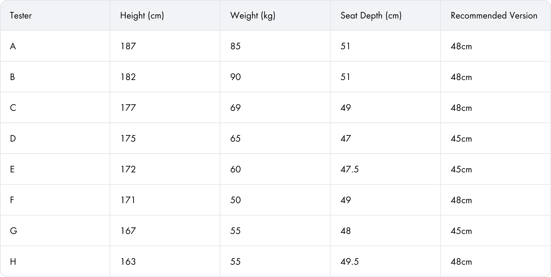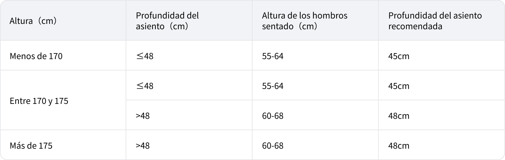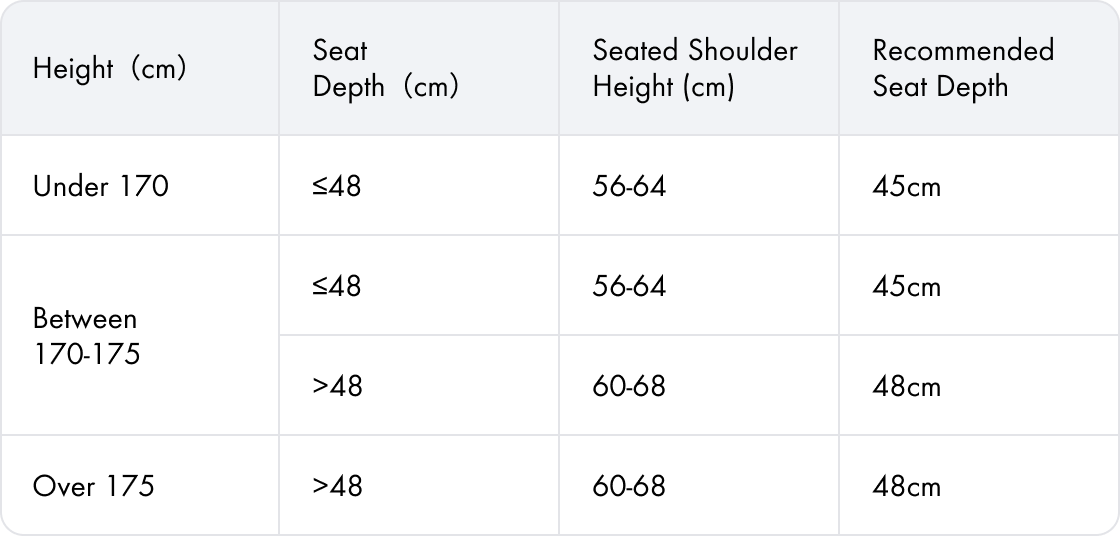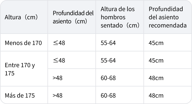Mida la profundidad de su asiento. Elija la versión de 45 cm o 48 cm para un soporte perfecto de los muslos y comodidad.